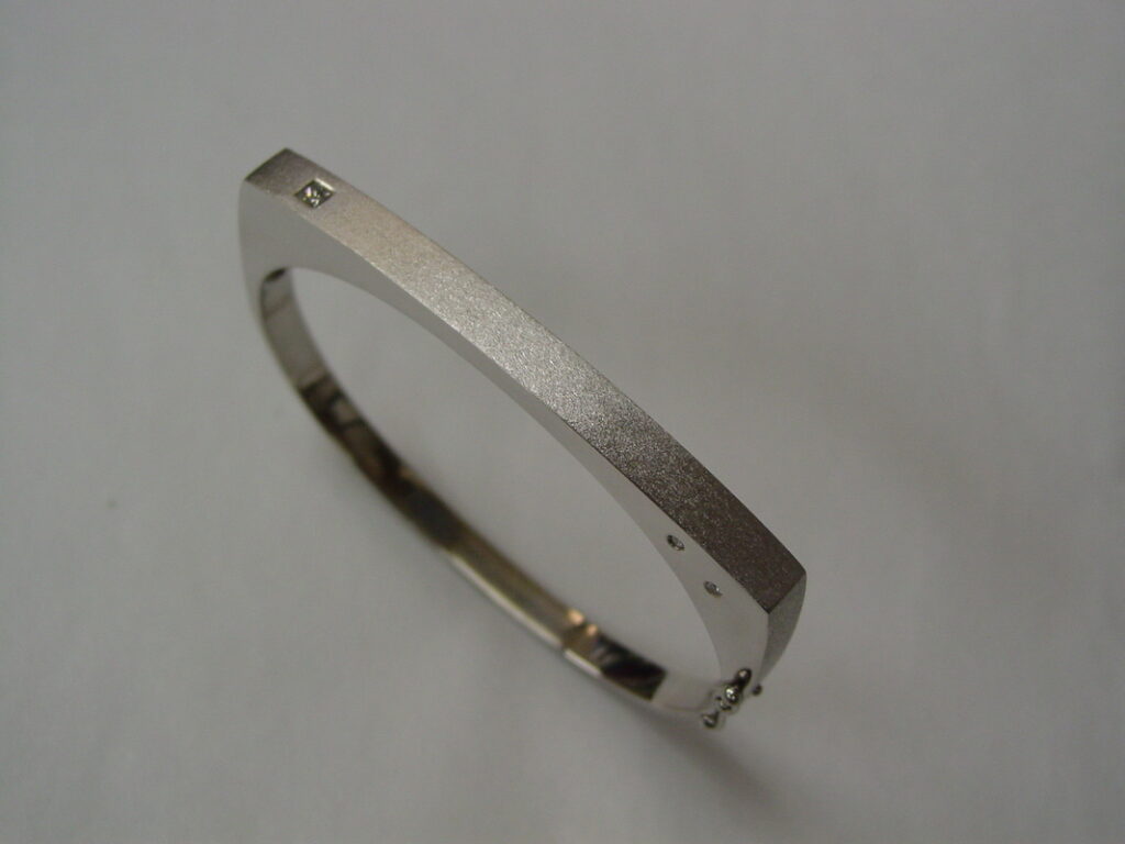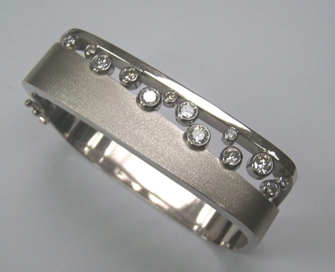 Brushed and Polished White Gold Bangle with Bezel Set Diamonds