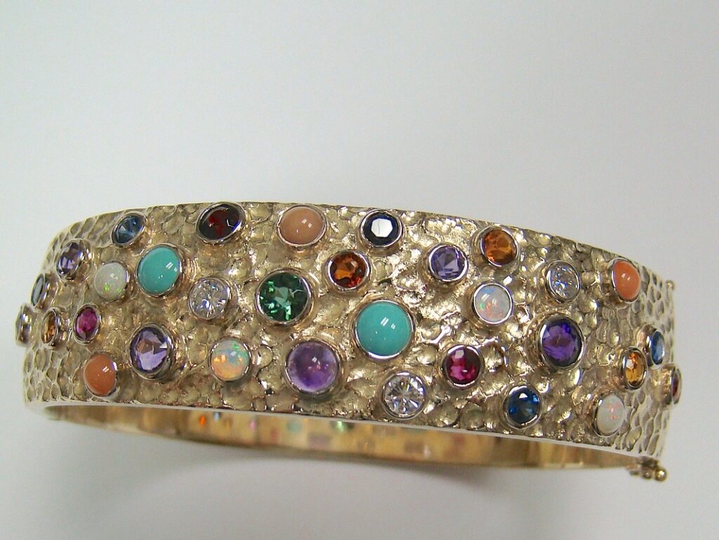 Yellow Gold Bangle with Bezel Set Precious and Semi-Precious Stones