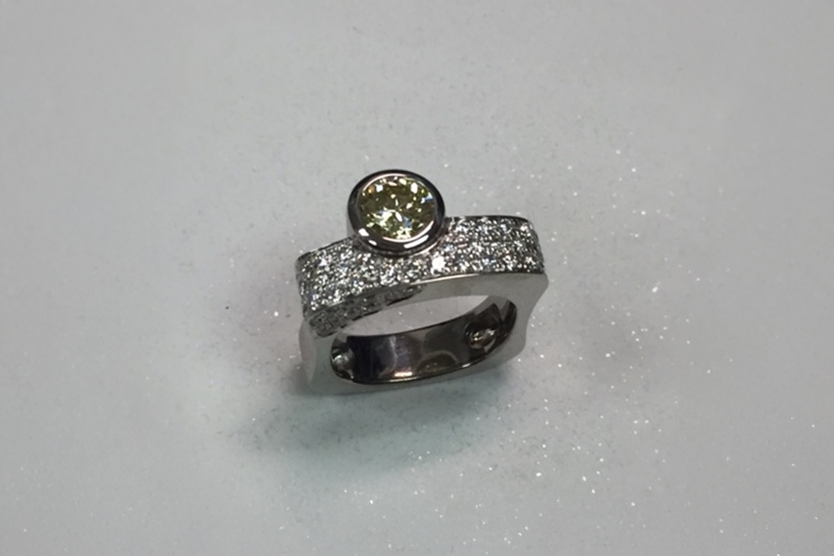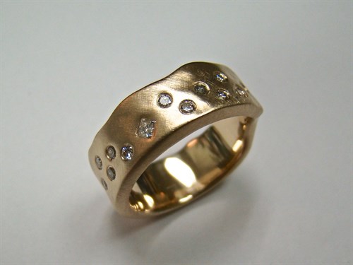 While the Lord of the Rings dragon hoarded jewels and hold, Mark Katzeff gathers only to create, then let go – no design the same. What you choose to wear on your fingers or gift to your beloved is lovingly detailed, hand-tooled, etched, and moulded to the specifications you create with Mark in your individual consultation. Gold, silver, platinum, bronze or a mix of the different elements, adding in gemstones such as diamonds, Ruby’s emeralds to name a few, stretching and curving shapes and layers, to craft your one of a kind piece of art.
